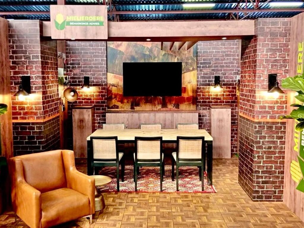 From concept to completion, ExpoWorx proudly designed and executed the Mielieboere Bemarkings Advies stand at NAMPO 2025. Built using a lightweight, fully repulpable fibreboard system, the stand delivered on strength, style, and sustainability -without compromise.